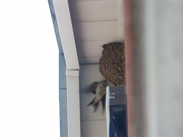 I'll speak with one of my mates at work (I work for the police and he's a wildlife liaison officer, so is well qualified to advise me) about when I can take it down... probably gonna leave it now til about October time when they will be well gone. The nest is nearly finished anyway so no more mud bombs!