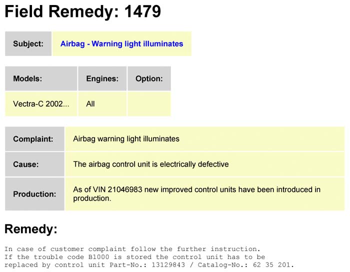 Thread: FR 1479: Airbag - Warning light illuminates (Vec C)